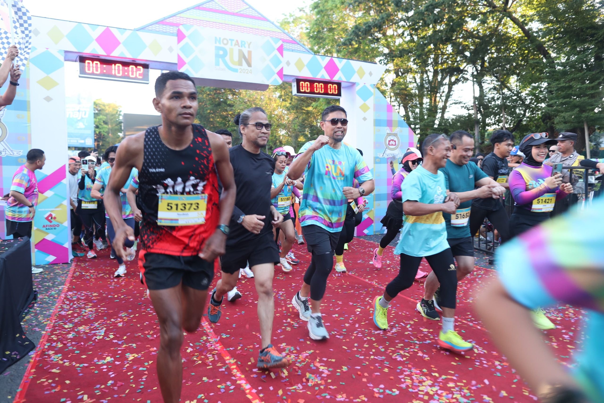 Setelah melepas Notary Run, Arwin seru-seruan dan ikut berlari dengan peserta.