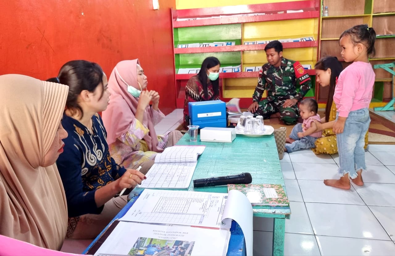 NUNUKAN KALTARA, Suara Jelata – Dalam upaya meningkatkan kesehatan balita serta kesadaran masyarakat terhadap pencegahan penyakit parotitis, Satgas Pamtas Yonarmed 11 Kostrad Pos Sei Kaca bersama Kader Posyandu Rinjani melaksanakan kegiatan pelayanan kesehatan balita dan penyuluhan kesehatan. Kegiatan bertempat di Kampung Sei Bolong, Kelurahan Nunukan Utara, Minggu (27/10/2024).