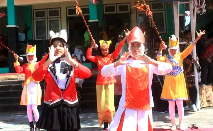 Kelas VIII – 6 mengenakan baju adat Kalimantan Barat dan Kelas VIII – 7 mengenakan baju adat Tobelo Halmahera Utara.