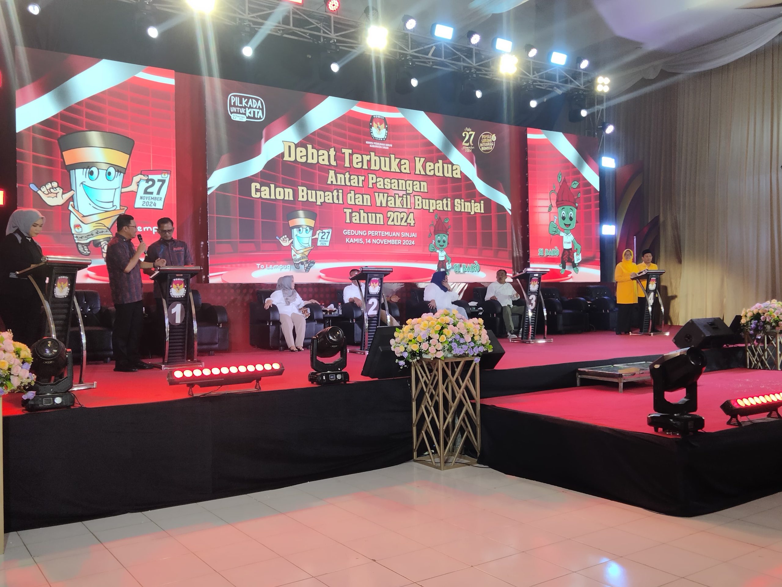 SINJAI, Suara Jelata-–Debat Publik kedua pasangan calon Bupati dan Wakil Bupati Sinjai tahun 2024 bertempat di Gedung Pertemuan Kabupaten Sinjai, Kamis (14/10/2024) pagi.