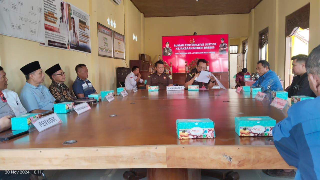 Kepala Kejaksaan Negeri Brebes, Yadi Rachmat Sunaryadi, SH, MH, melalui Kasi Pidum Nugroho Tanjung, SH, MH, menyerahkan Surat Ketetapan Penyelesaian Perkara berdasarkan Keadilan Restoratif kepada Tarmidi di Rumah Restorative Justice Kejaksaan Negeri Brebes di Kampung Restorative Justice, Balai Desa Buaran, Kecamatan Jatibarang, pada Rabu, 20 November 2024.