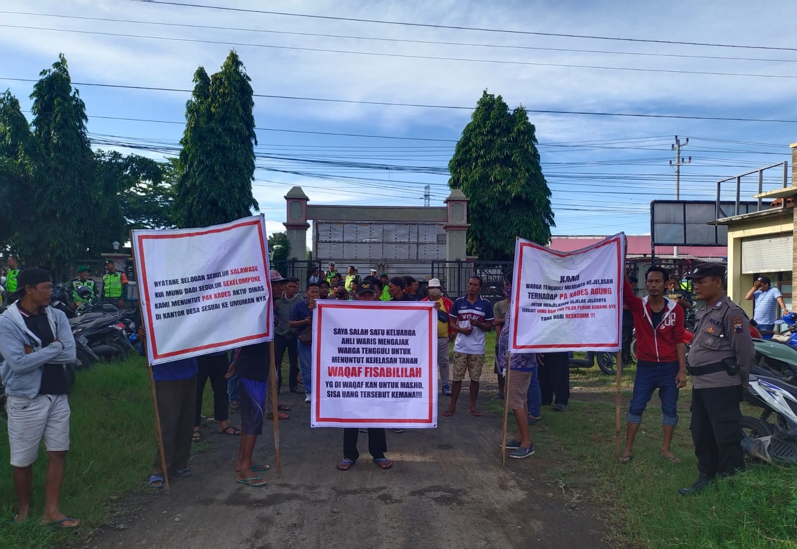Adapun kedatangan mereka tidak lain untuk menuntut kejelasan lahan khas desa yang jadikan tempat parkir di salah satu pabrik yang ada di desa setempat.