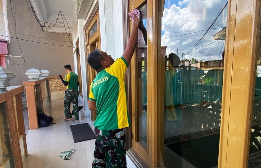 Pembersihan masjid mencakup penyapuan halaman, pengepelan lantai, serta pembersihan tempat wudhu dan kamar mandi. Selain itu, personel Satgas juga membantu memperbaiki beberapa fasilitas yang rusak agar jamaah dapat beribadah dengan lebih nyaman.