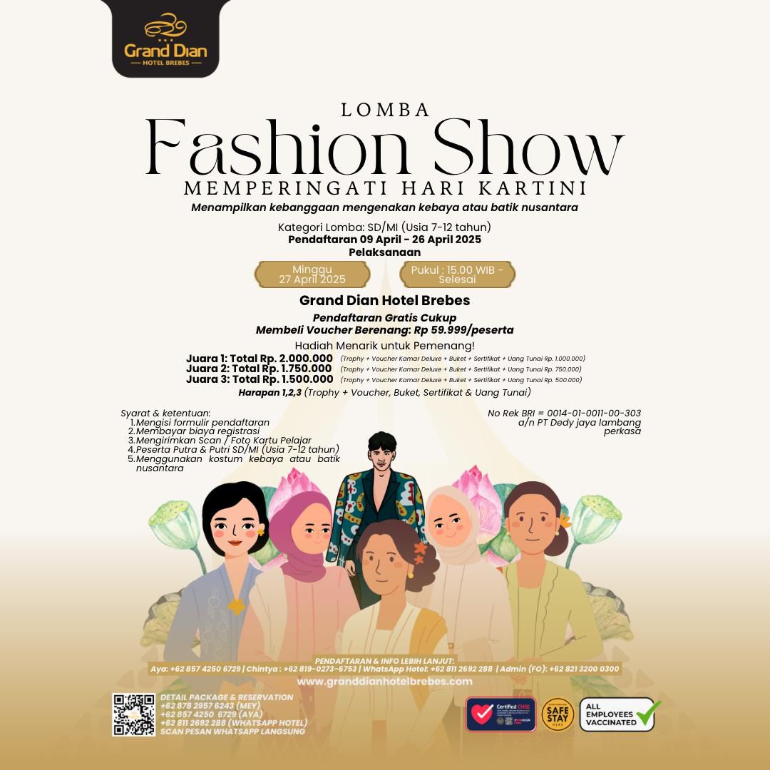 Gratis berhadiah menarik, Grand Dian Hotel Brebes Gelar Lomba Fashion Show. (foto : istimewa).