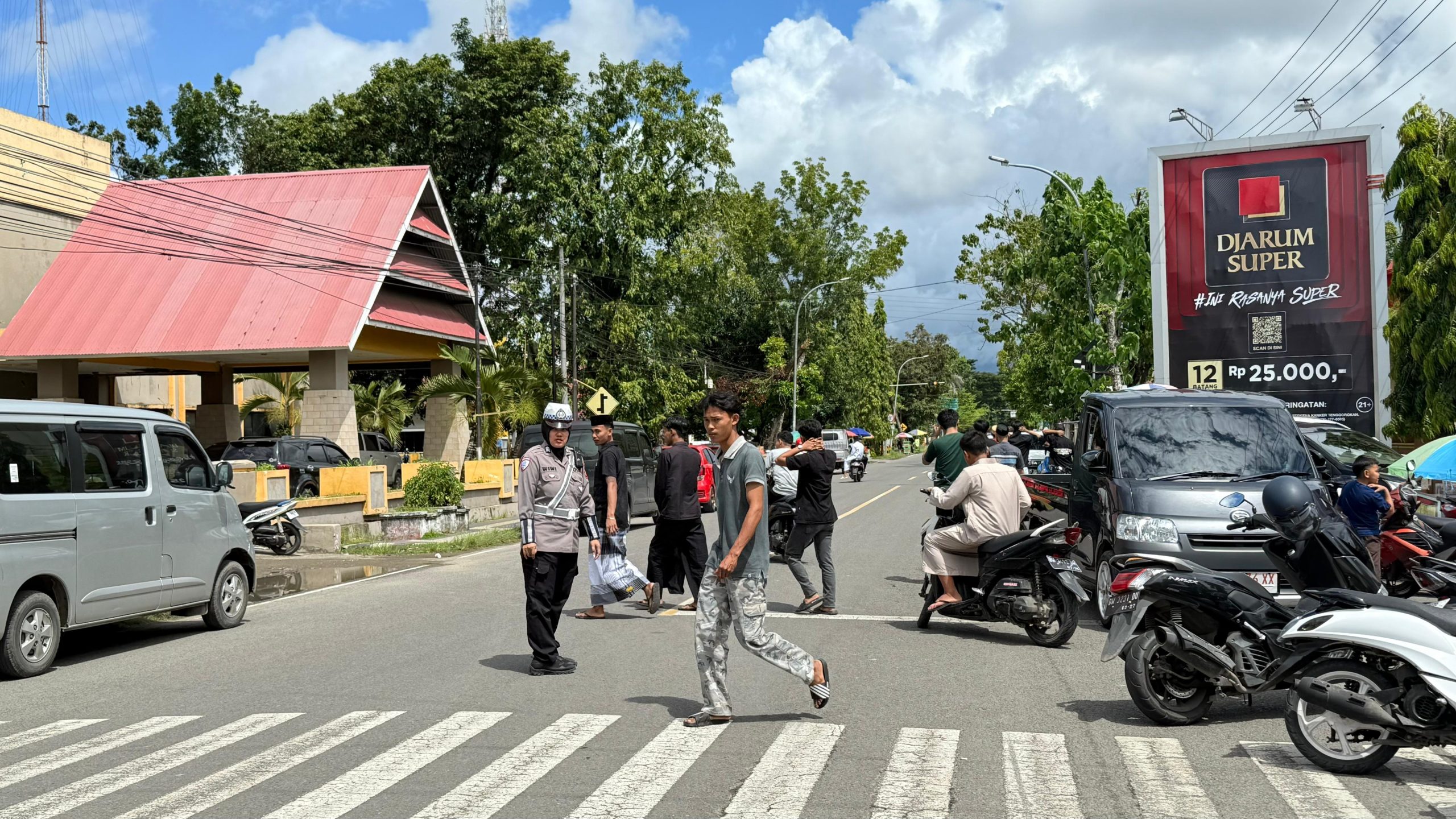 Selain berjaga di sekitar masjid, para Polwan juga melakukan pengaturan lalu lintas, terutama di titik-titik rawan kemacetan di sekitar area ibadah.