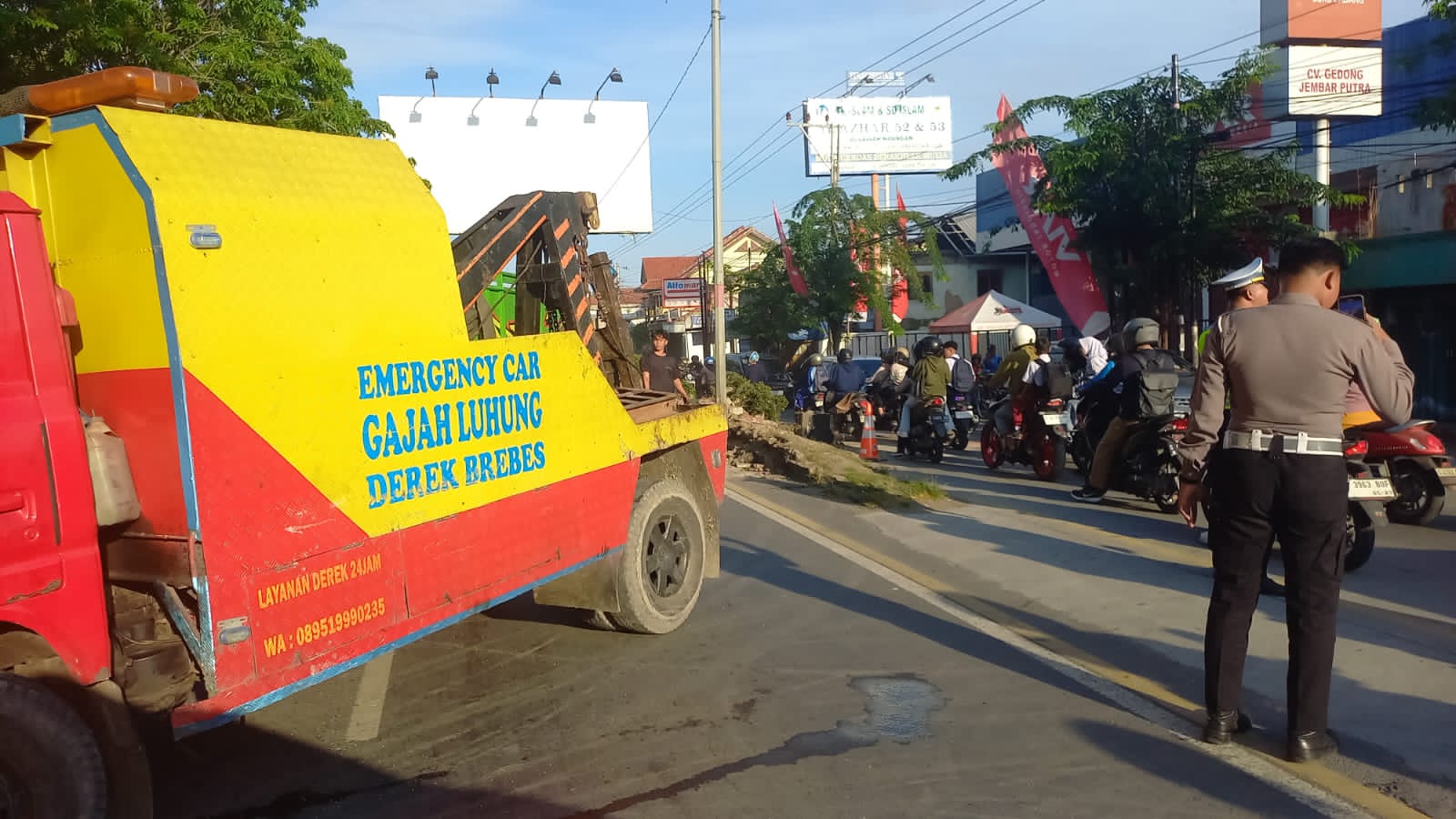BREBES JATENG, Suara Jelata – Sebuah truck engkel bermuatan penuh kayu rotan terbalik di jalur pantura, Jalan Gajah Mada, Kabupaten Brebes, Jawa Tengah, Senin pagi (15/9/2025).