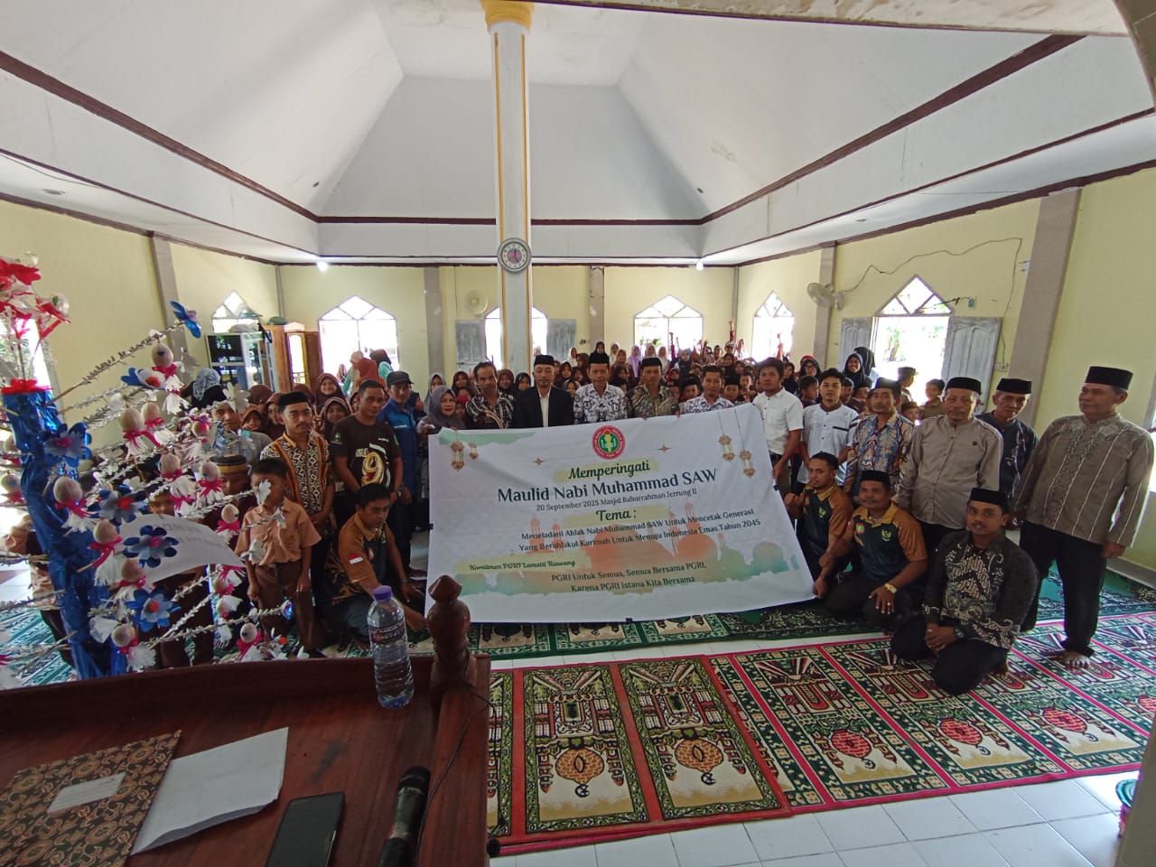 Sinjai – Persatuan Guru Republik Indonesia (PGRI) Ranting Lamatti Riawang menggelar kegiatan dengan tema “Meneladani Akhlak Nabi Muhammad SAW untuk Mencetak Generasi Berakhlakul Karimah Menuju Indonesia Emas 2045”, di Masjid Baburrahman Jerrung II, Sabtu (20/9/2025).