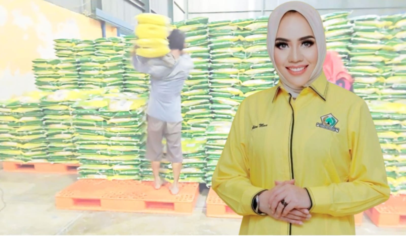 Alien Mus, Anggota Komisi IV DPR-RI Fraksi Golkar dengan latar belakang beras bantuan yang siap didistribusikan untuk masyarakat Maluku Utara. (foto: Ateng/Red)