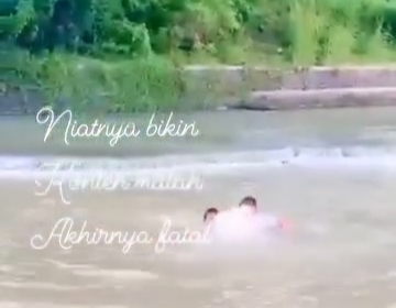 Kedua remaja tersebut sebelumnya terlihat sedang membuat konten video di salah satu jembatan di desa tersebut.