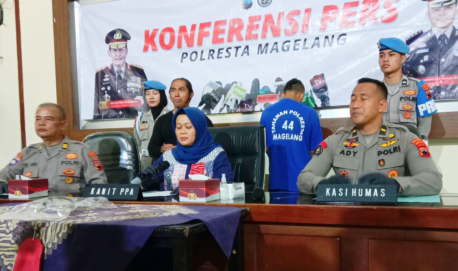 Kasus ini berhasil diungkap Polresta Magelang dan dibeberkan dalam Konferensi Pers pada Kamis (30/10/2025) di Gedung Bhayangkara Utama (GBU) Mapolresta setempat. Kegiatan dipimpin Kapolresta Magelang Kombes Pol Herbin Sianipar diwakili Kanit PPA Ipda Isti Wulandari didampingi Kasihumas Ipda Ady Lilik Purbianto.
