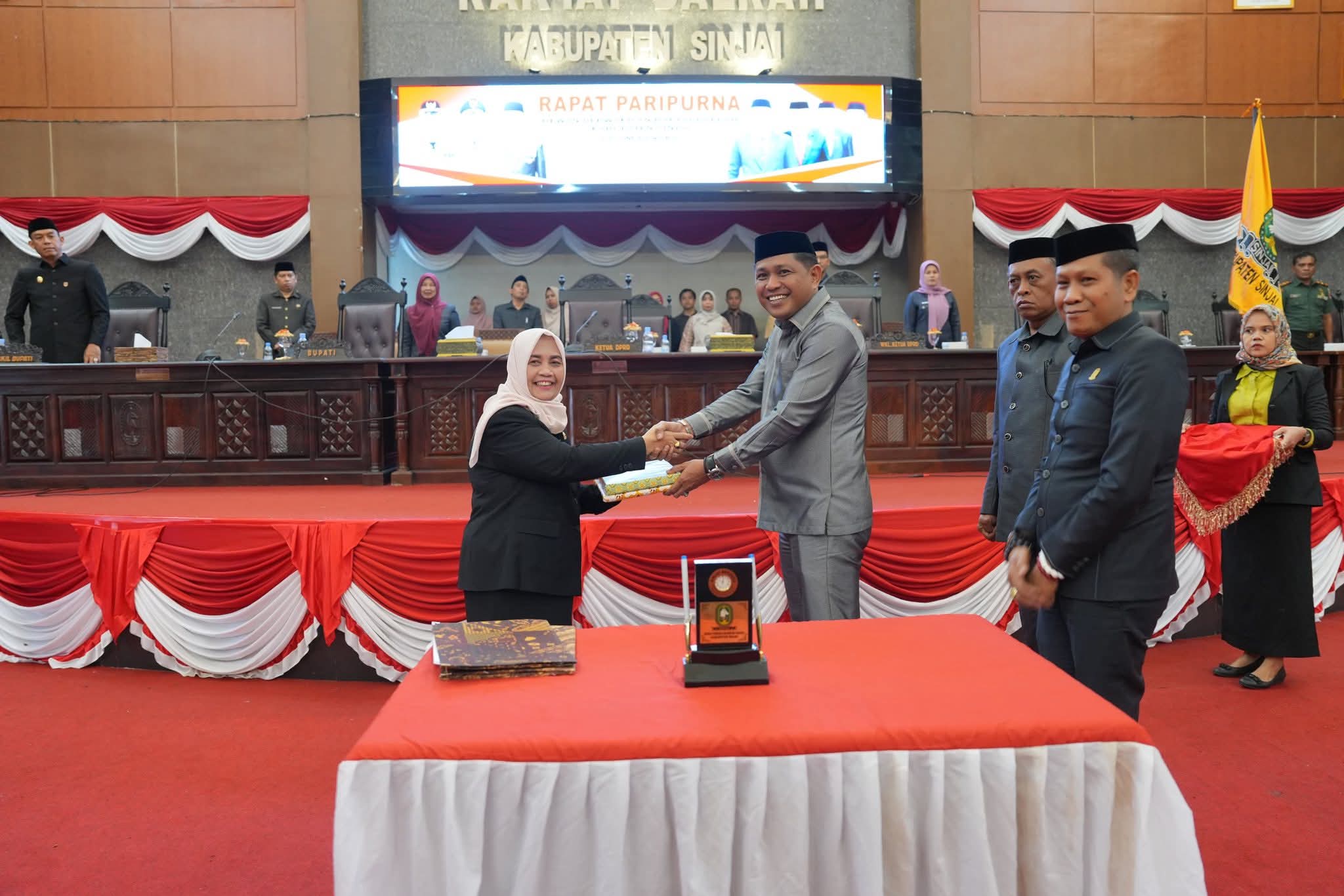 Penyerahan tersebut dilakukan usai penandatanganan persetujuan bersama dalam Rapat Paripurna DPRD Sinjai yang digelar Minggu (30/11/2025) sore.